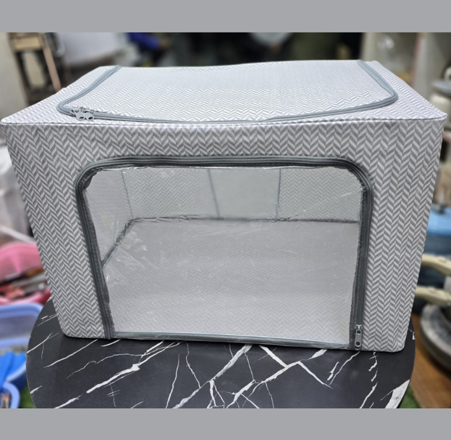 Maximize your closet space with this 100L Oxford cloth storage box, featuring a sturdy internal frame and a clear viewing window for effortless organization. Perfect for storing bulky blankets, quilts, and seasonal clothing, this foldable bin provides a neat, dust-free solution for any home.