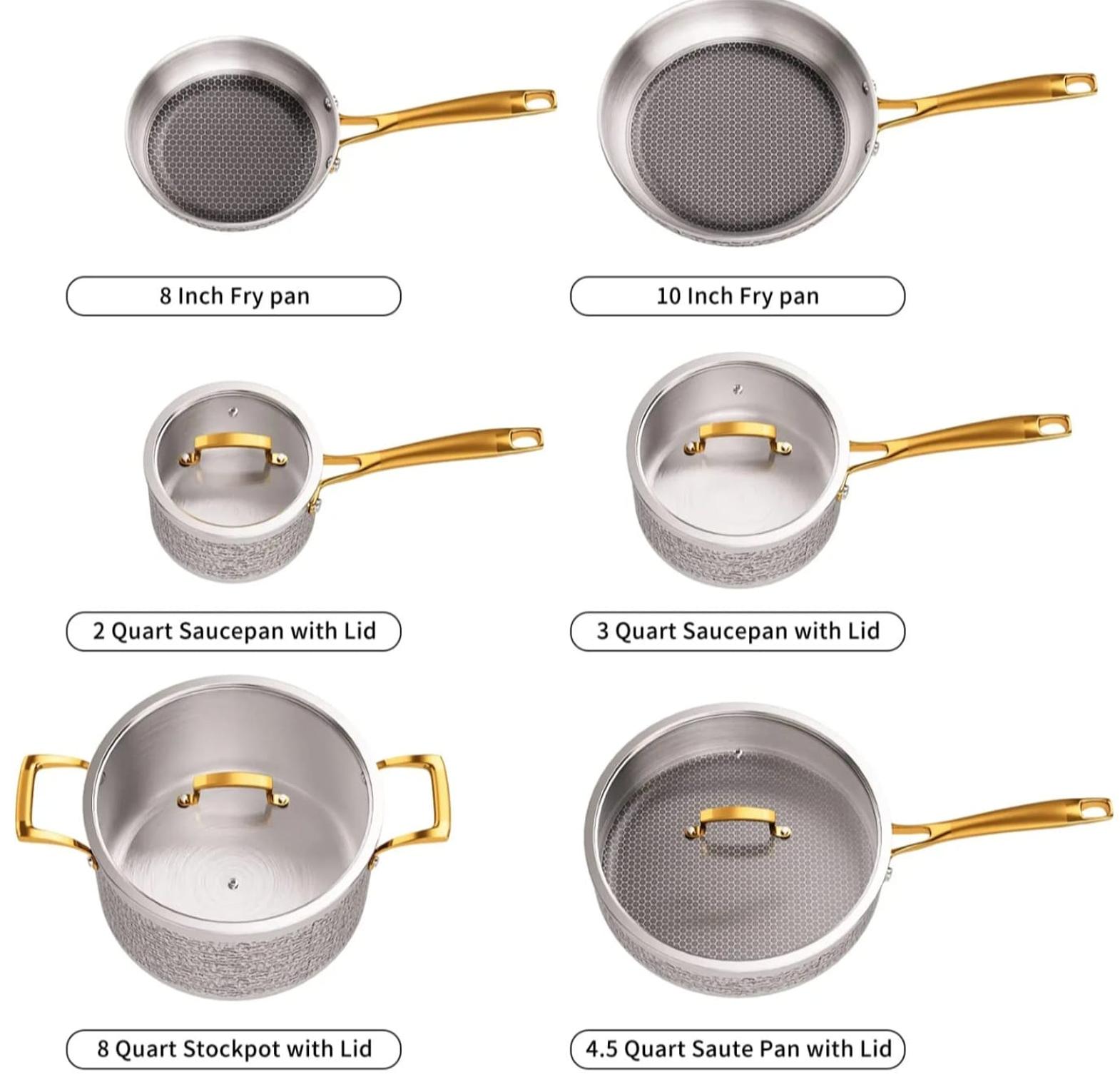 A premium 10-piece stainless steel cookware set with durable non-stick properties and modern design.