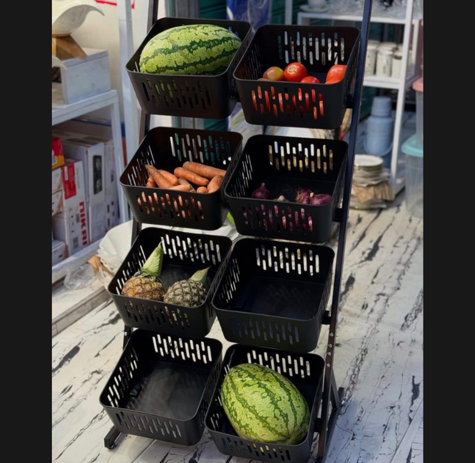 Organize your kitchen with this heavy-duty 4-tier steel storage rack, featuring a double-column design for maximum capacity. Built with movable and lockable wheels, it provides a stable and versatile solution for storing fresh produce and household essentials.
