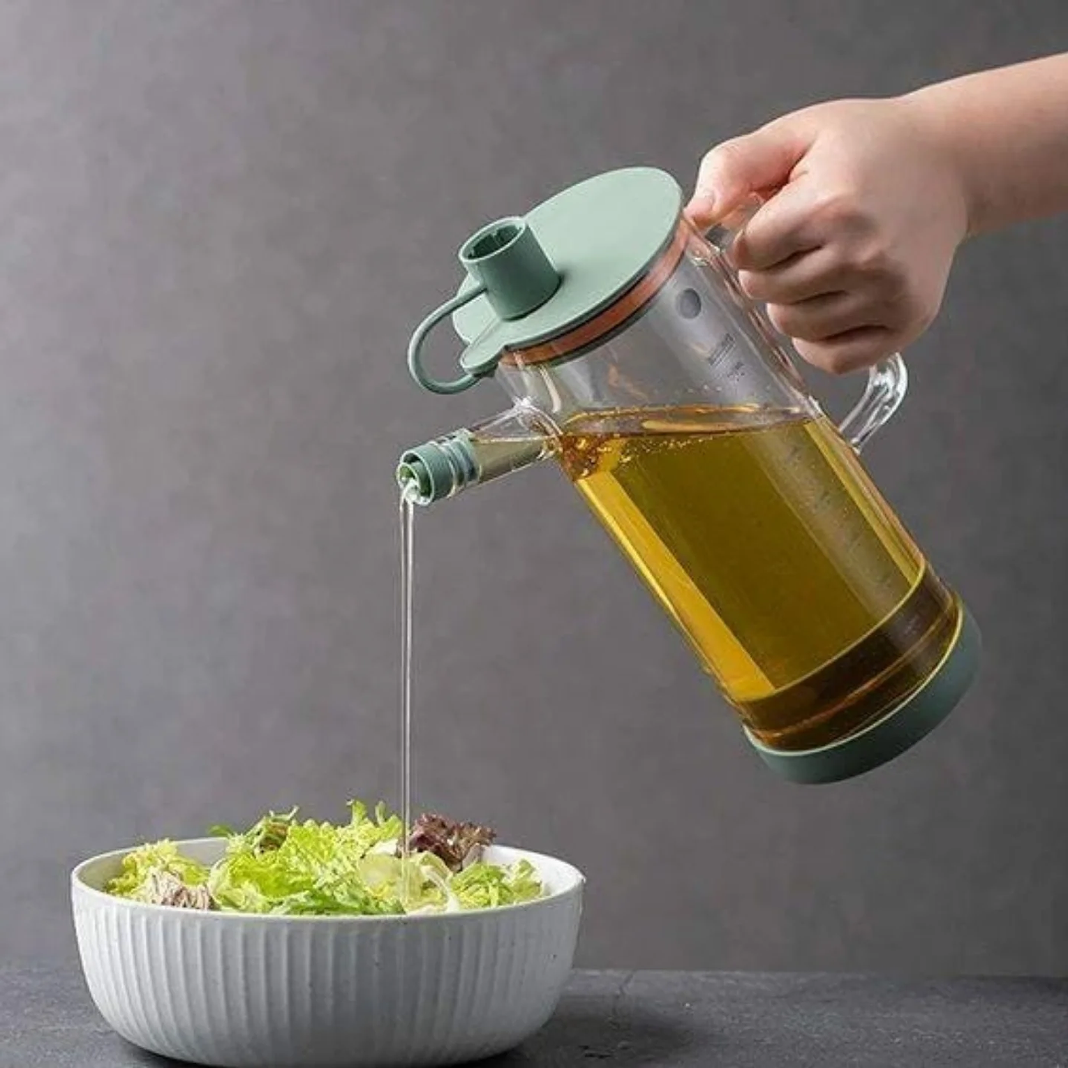 A durable and functional 750ml leak proof oil jar made from high borosilicate glass. This Large capacity oil pot features an Accurate oil control scale and a Multi-layer leak proof design to ensure a clean, precise pour.