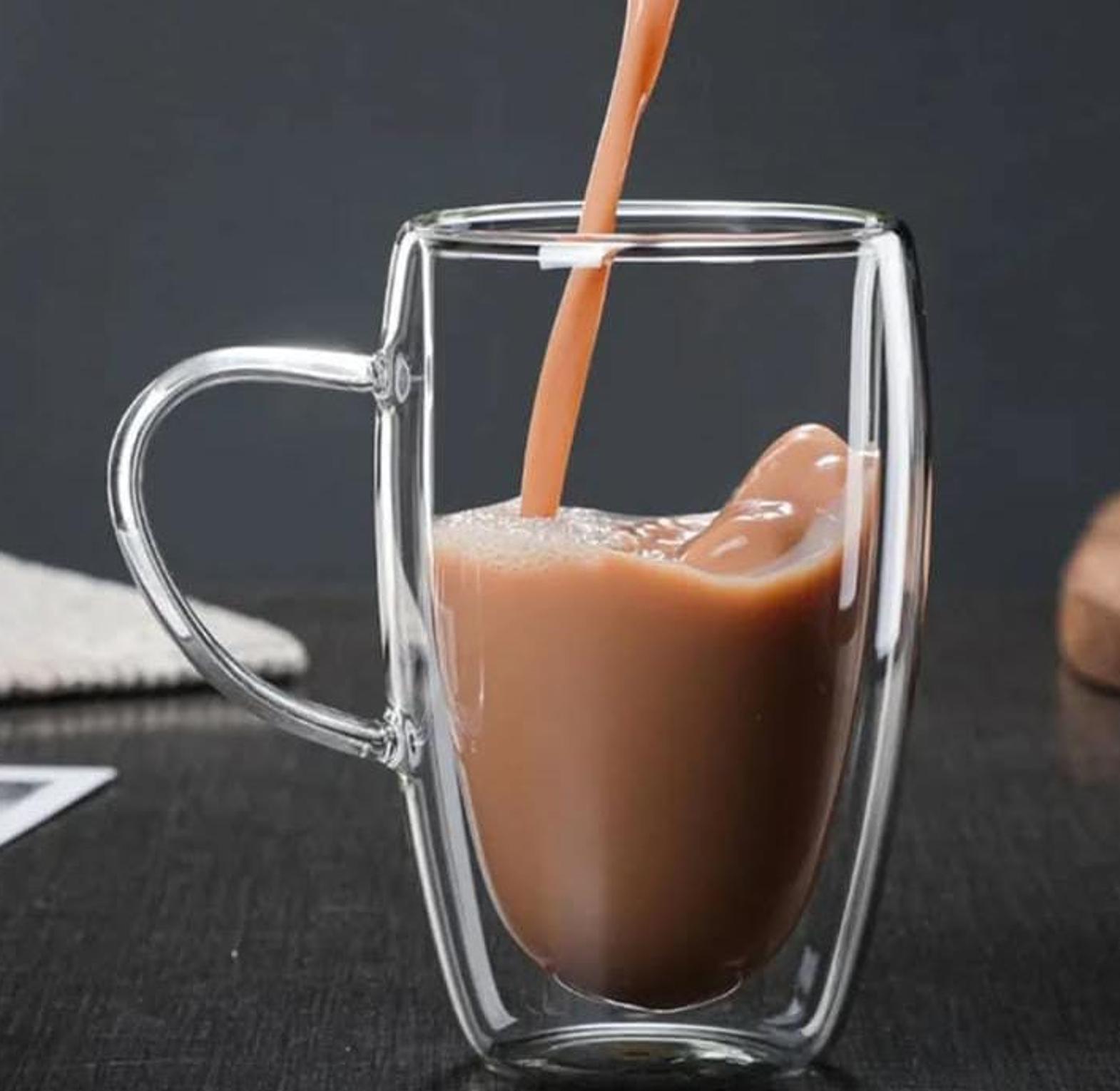 This elegant 450ml coffee mug is crafted from high-quality borosilicate double-walled glass to keep your beverages hot or cold for longer. The innovative design ensures the exterior remains cool to the touch while showcasing the liquid suspended beautifully within.