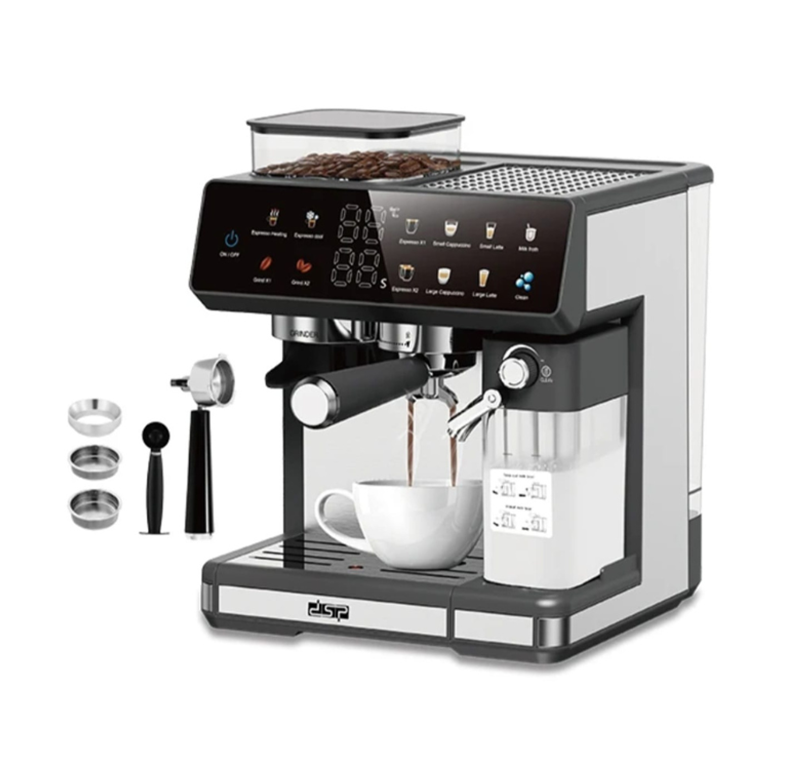 Master the art of home brewing with this high-performance 3-in-1 espresso machine, featuring a powerful 20-bar water pump and an innovative bean grinding system. Equipped with an intuitive color touch screen and a professional frothing system, this 1350W appliance allows you to grind, froth, and brew barista-quality cappuccinos and lattes with ease.