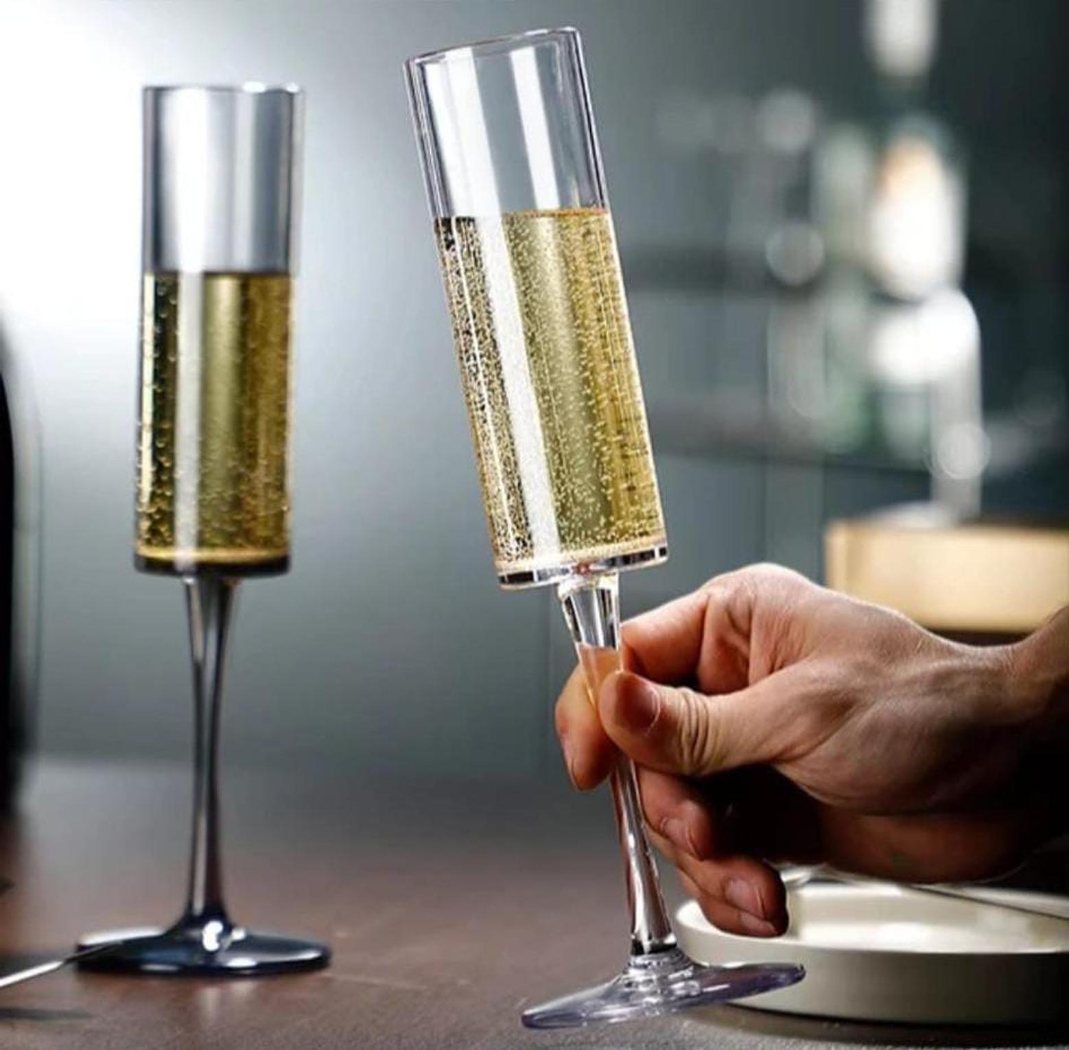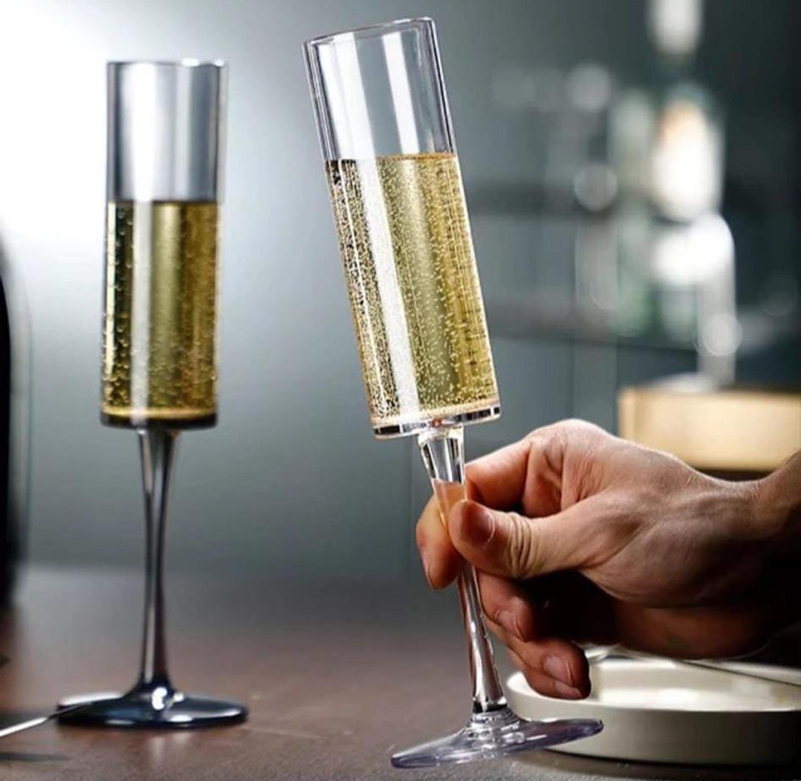 Elevate your celebrations with these stunning 180ml crystal champagne flutes, featuring a modern cylindrical silhouette and a sophisticated long-stemmed design. Crafted with exceptional clarity and a stylish dark-toned base, these flutes are perfect for showcasing the fine bubbles of your favorite sparkling wines.