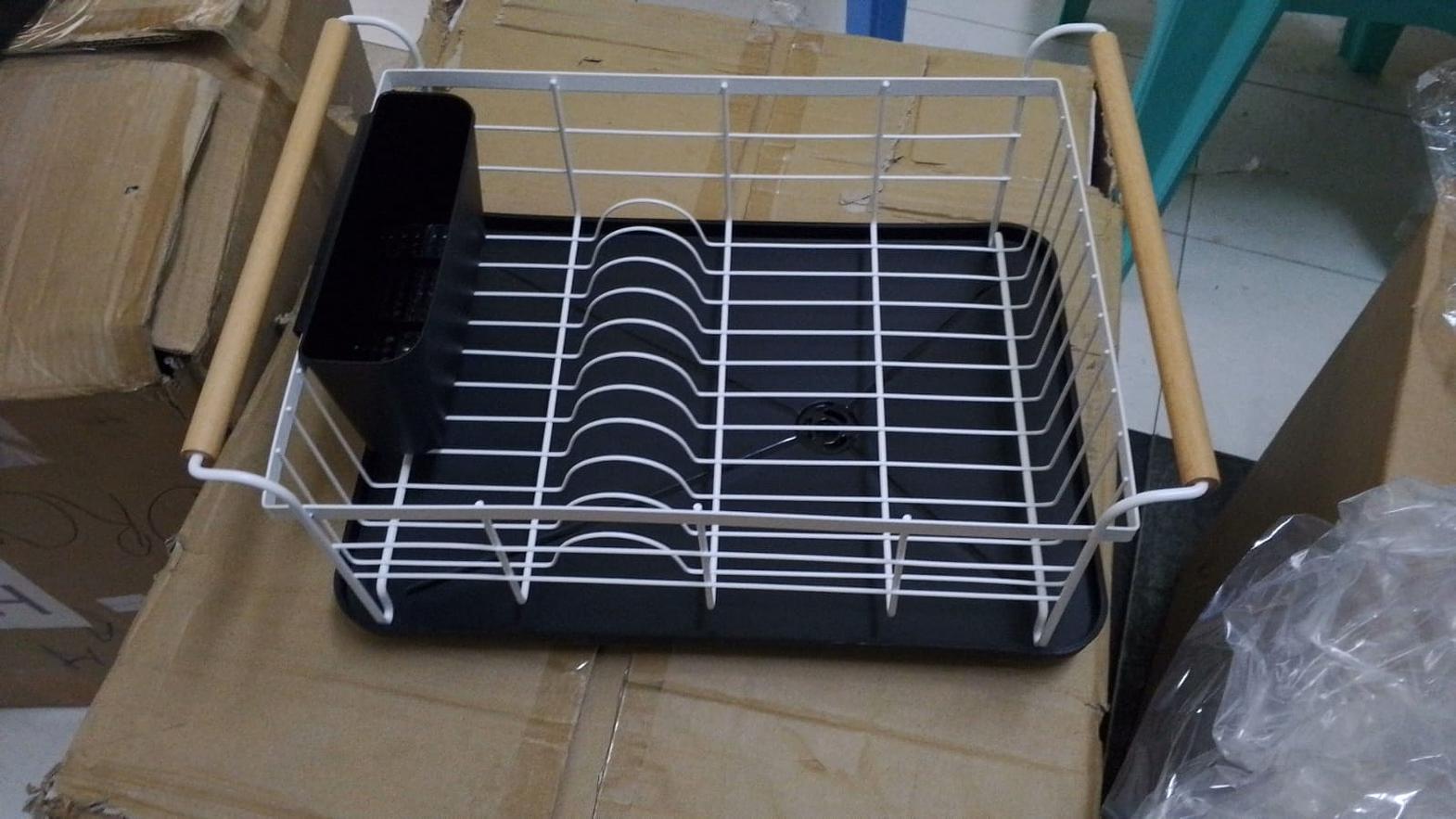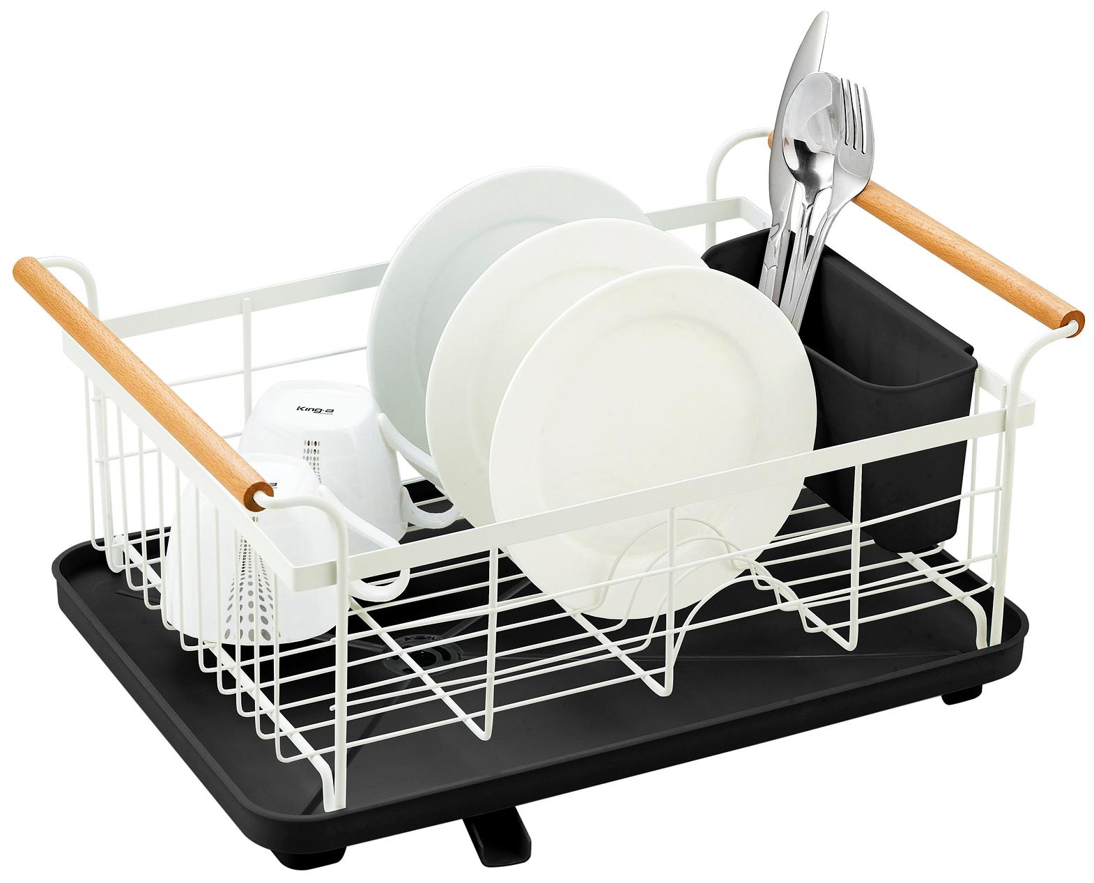 The HTH single-layer dish rack is a simple, durable kitchen organizer designed to neatly hold and dry your dishes while saving counter space.
