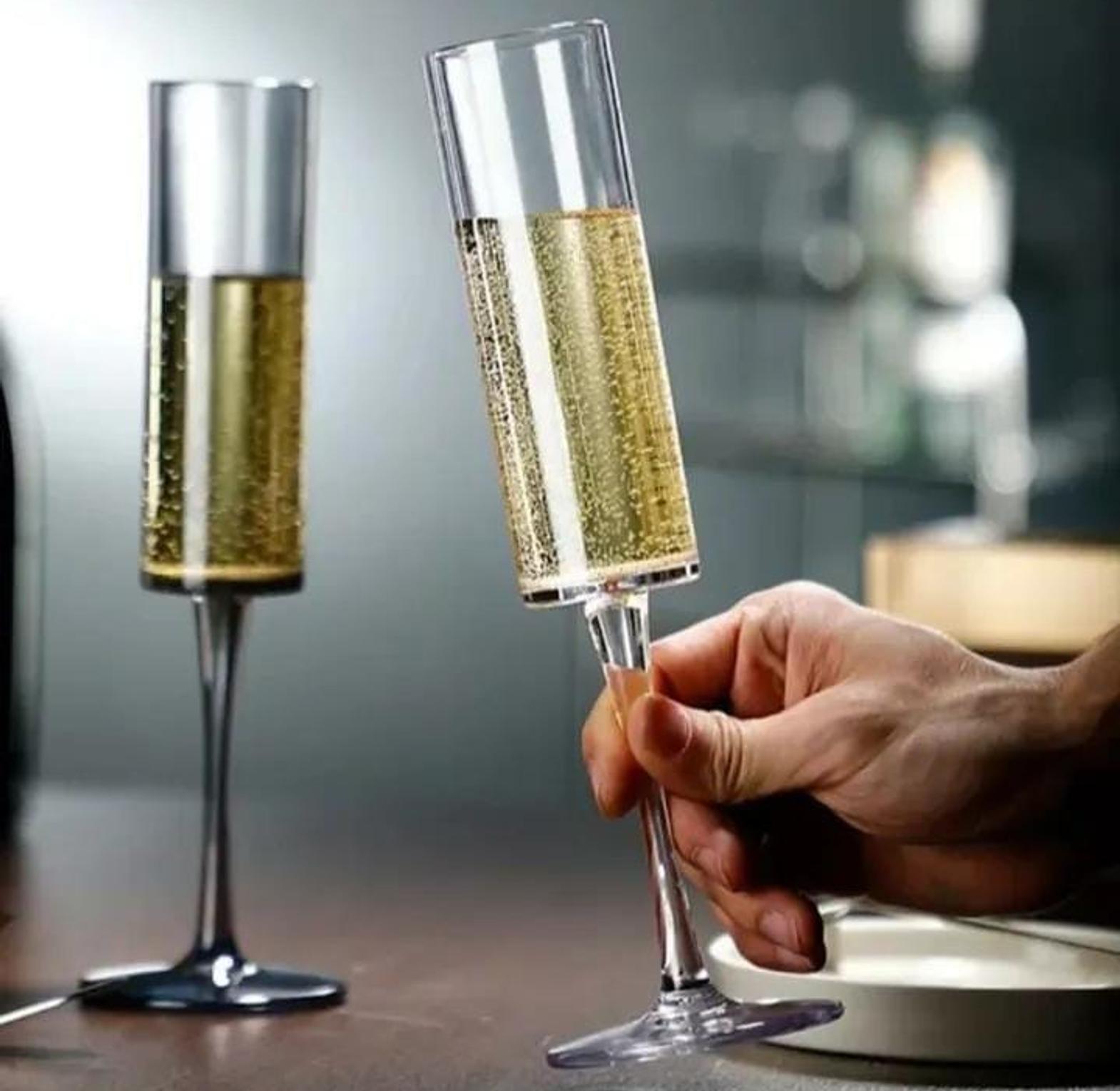 Celebrate in sophistication with these elegant crystal champagne flutes, featuring a contemporary cylindrical bowl and a gracefully long stem. Designed to enhance the effervescence and flavor of sparkling wines for any special occasion.