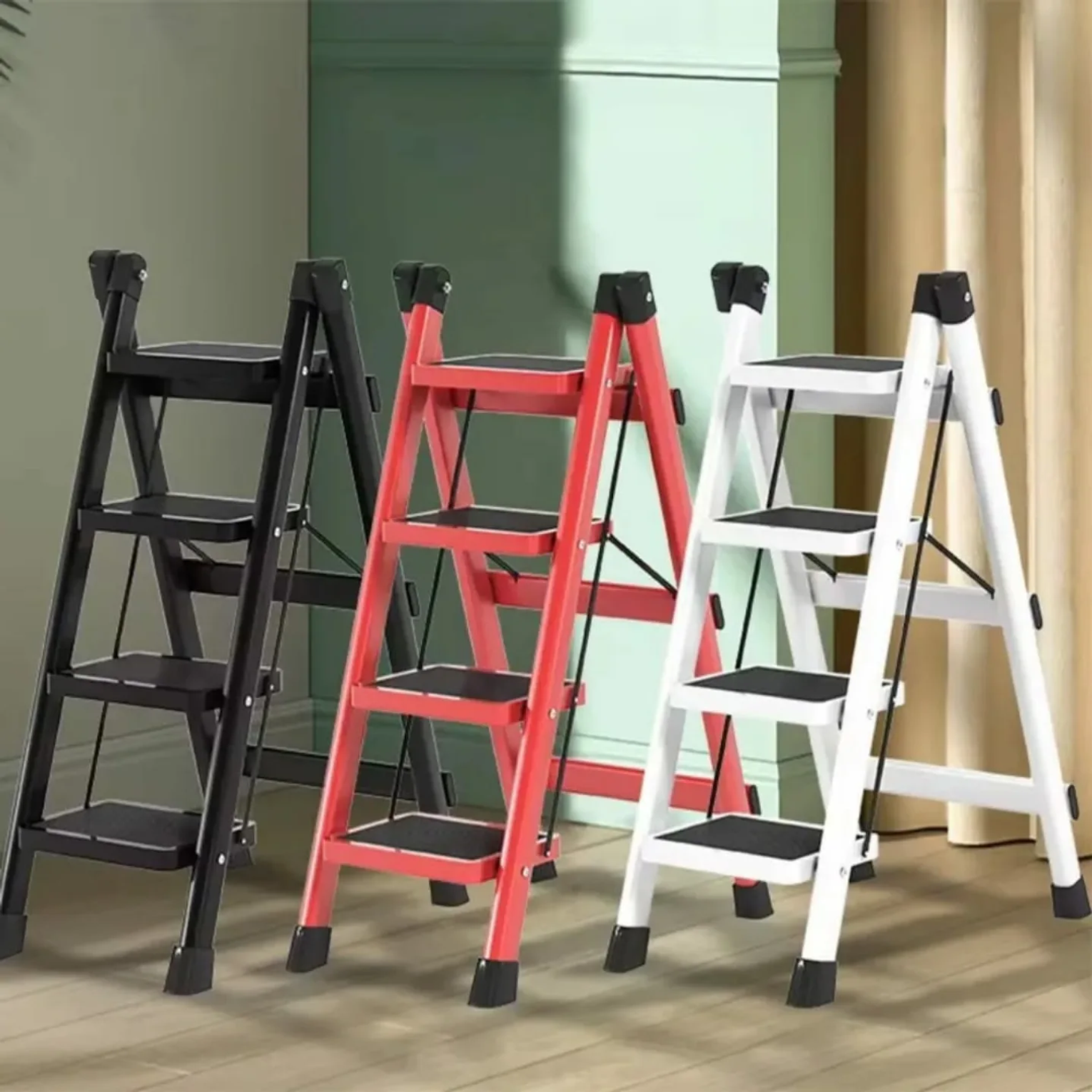 Reach new heights safely with this 4-Step Foldable Ladder, offering a height of 100cm. Crafted from premium alloy and PVC with a rust-proof coating, it can safely load up to 330kg. Available in black, red, and white.