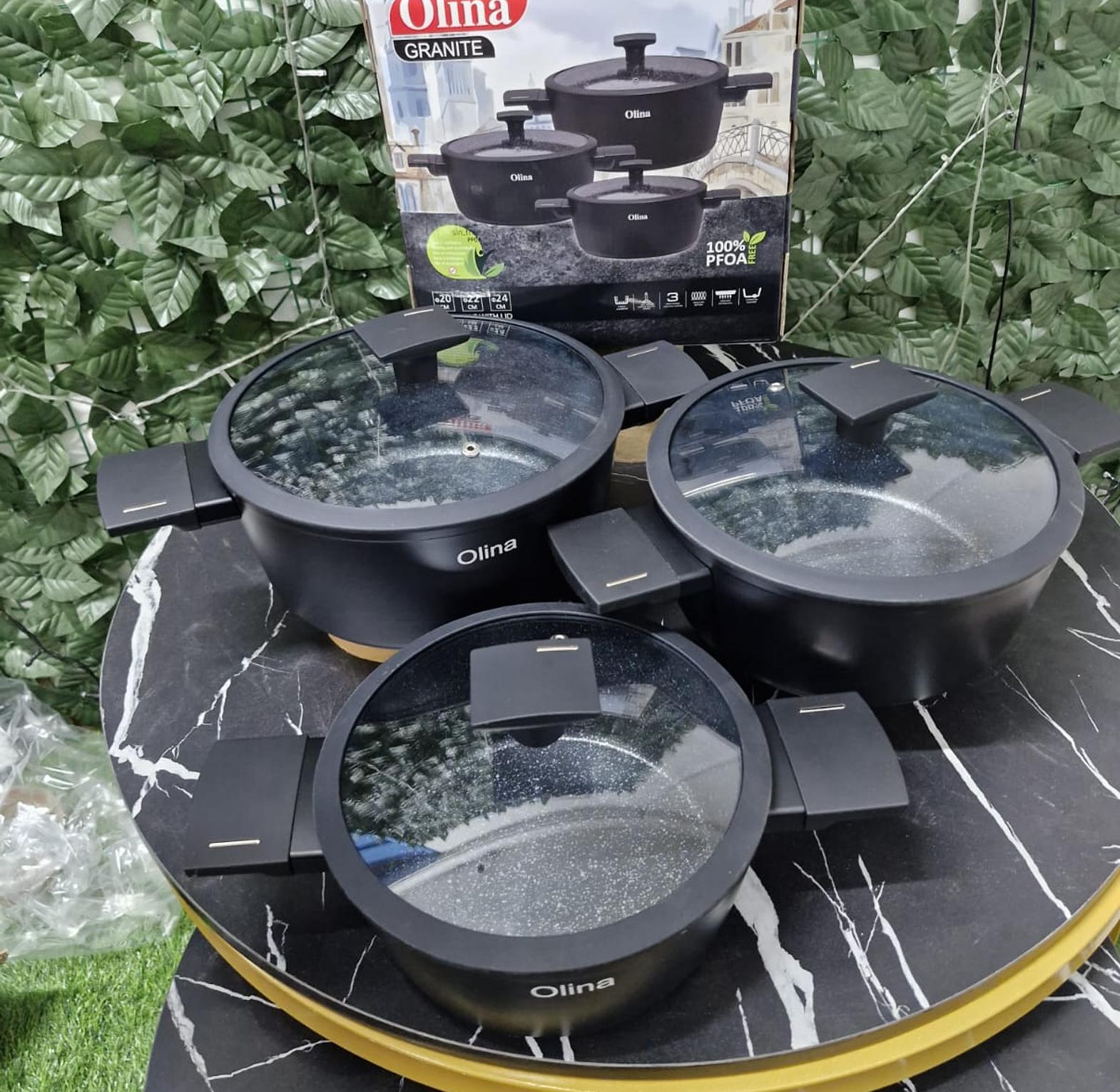Cook healthier with this premium 3-piece granite cookware set, featuring a 100% PFOA, lead, and cadmium-free non-stick coating. Designed specifically for small household use, these durable casseroles come with tempered glass lids and are compatible with induction cooktops.