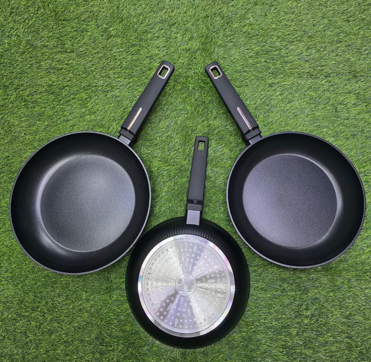 Upgrade your culinary skills with this high-quality non-stick, flat-bottomed frying pan, featuring an ergonomic Cabo handle for a secure and comfortable grip. Crafted from durable aluminum with a specialized induction base, this pan is 100% PFOA, PFOS, and BPA free, ensuring a healthy cooking environment for every meal.