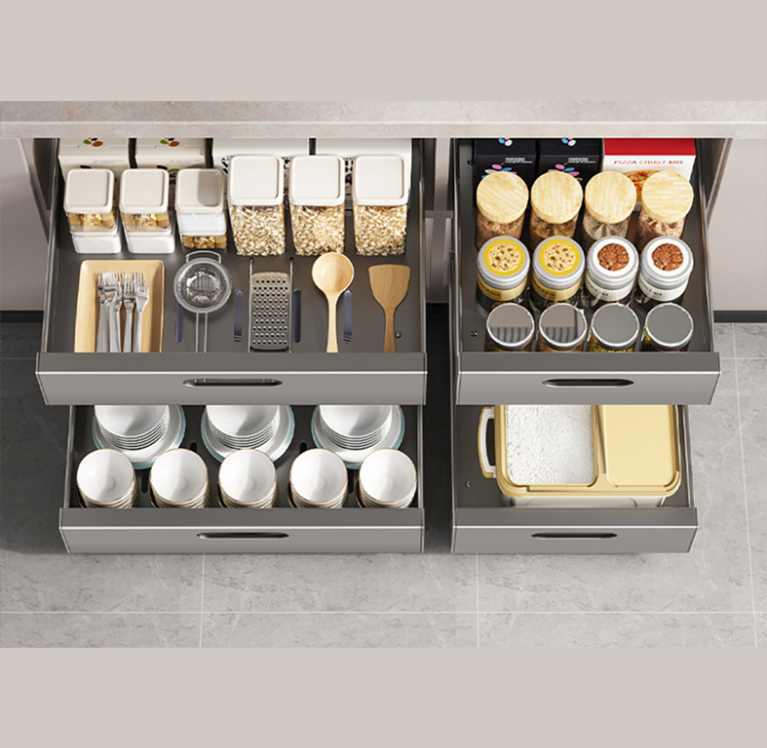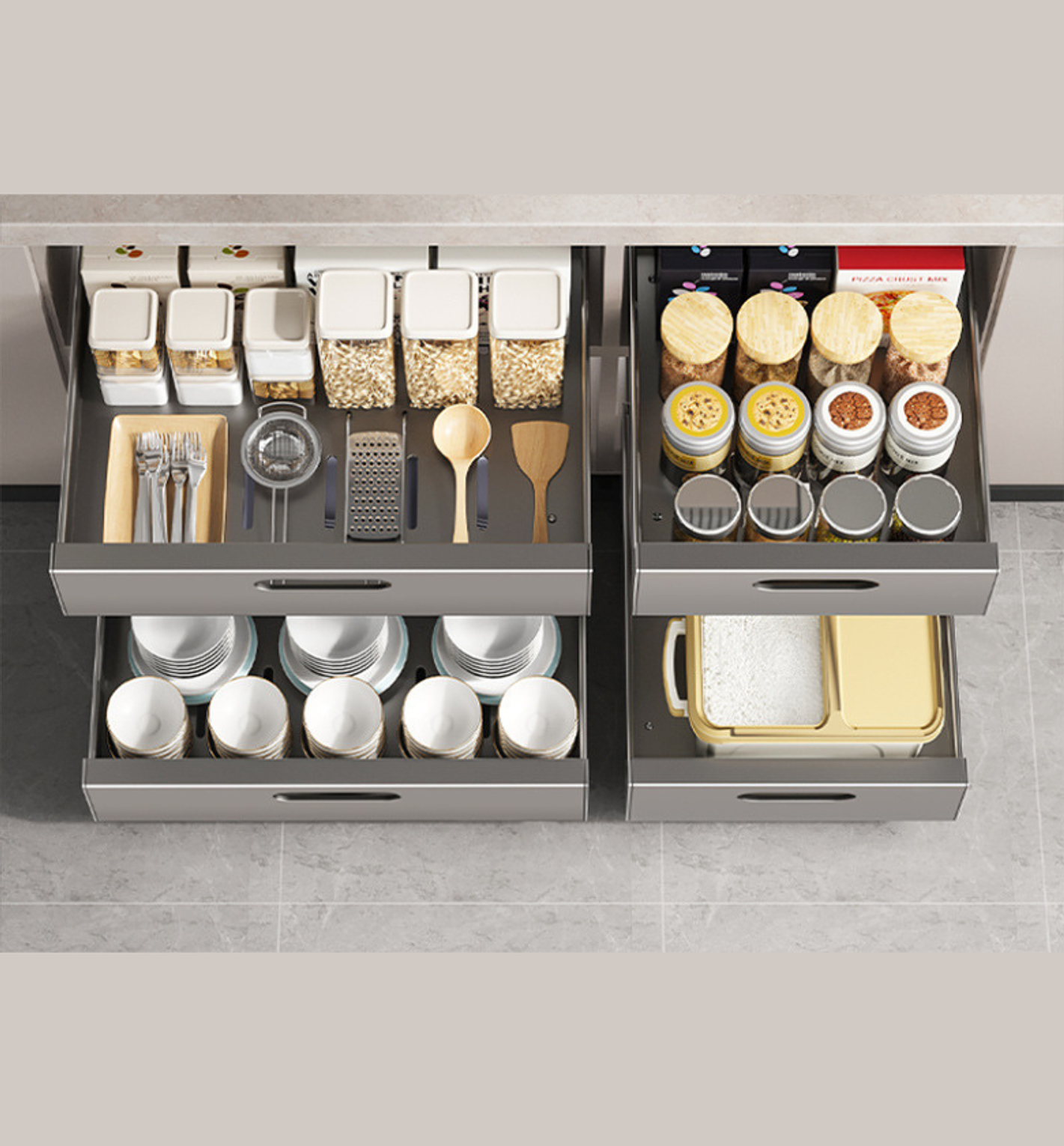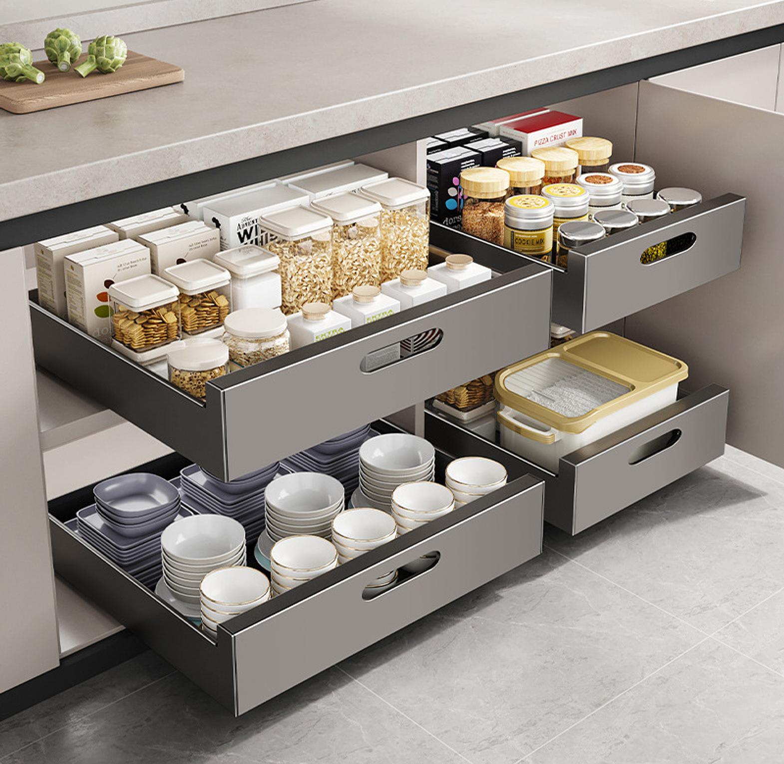 Modern Aesthetic Design: Features a sleek, minimalist finish that seamlessly integrates into contemporary kitchen drawers and cabinets.