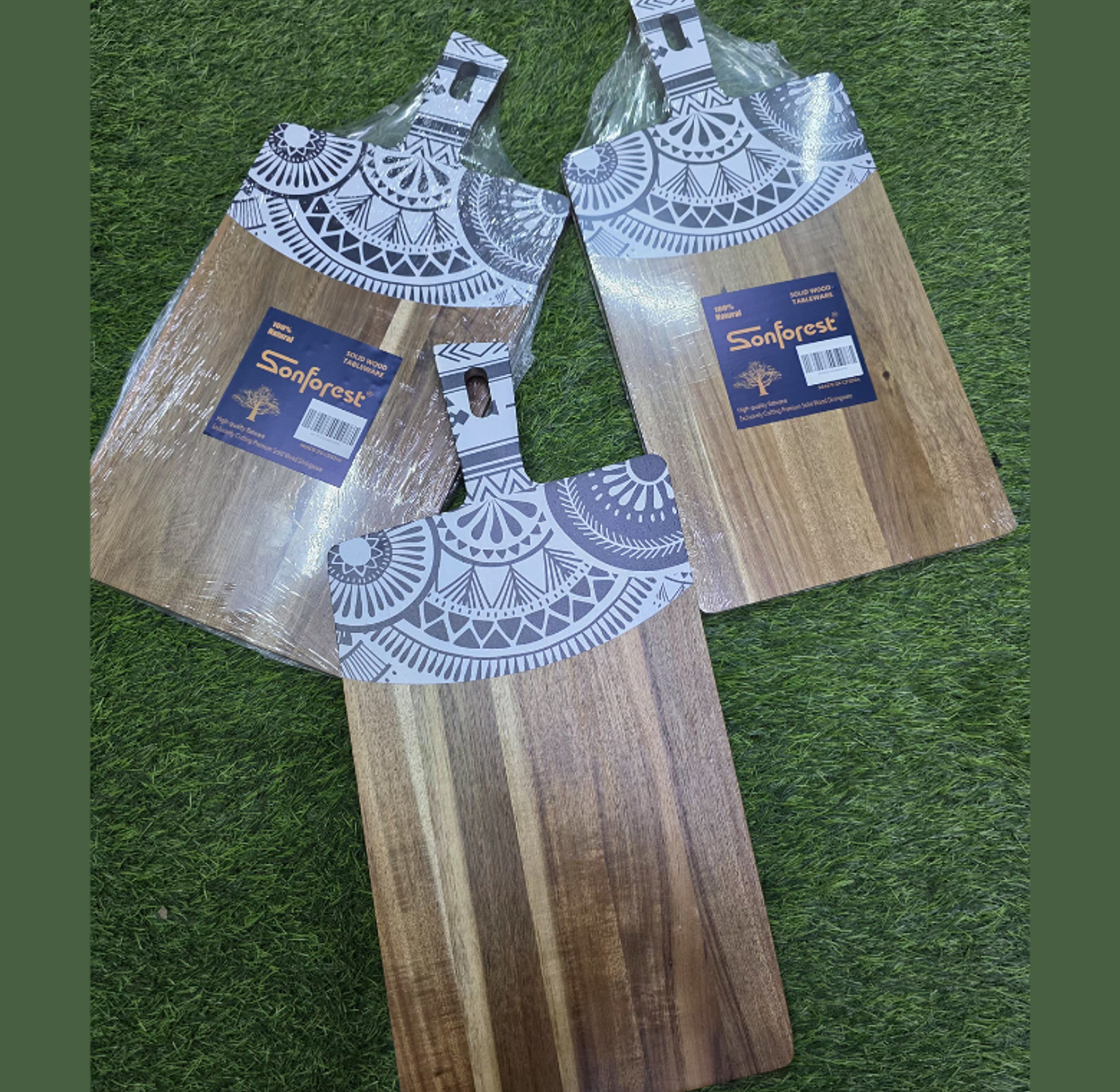 Enhance your kitchen with this heavy-duty rectangular cutting board, masterfully crafted from premium Acacia wood. Featuring a unique natural custom pattern stitching and a generous 46.8 cm x 22.5cm surface, this durable board serves as both a high-performance preparation station and an elegant serving tray for gourmet presentations.