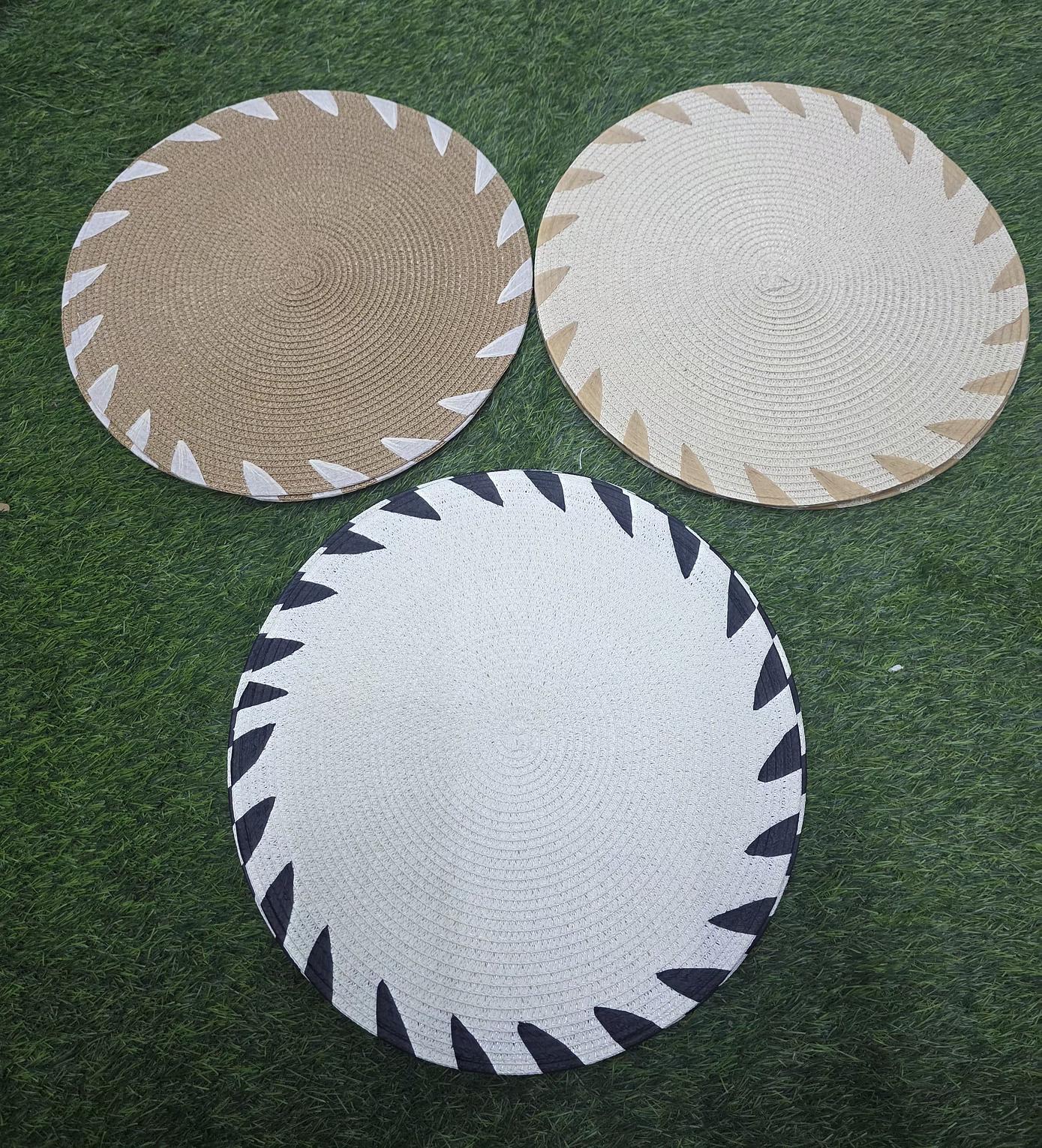 Round elegant braided table mats are stylish, heat-resistant placemats designed to enhance dining table décor with a modern boho touch.
