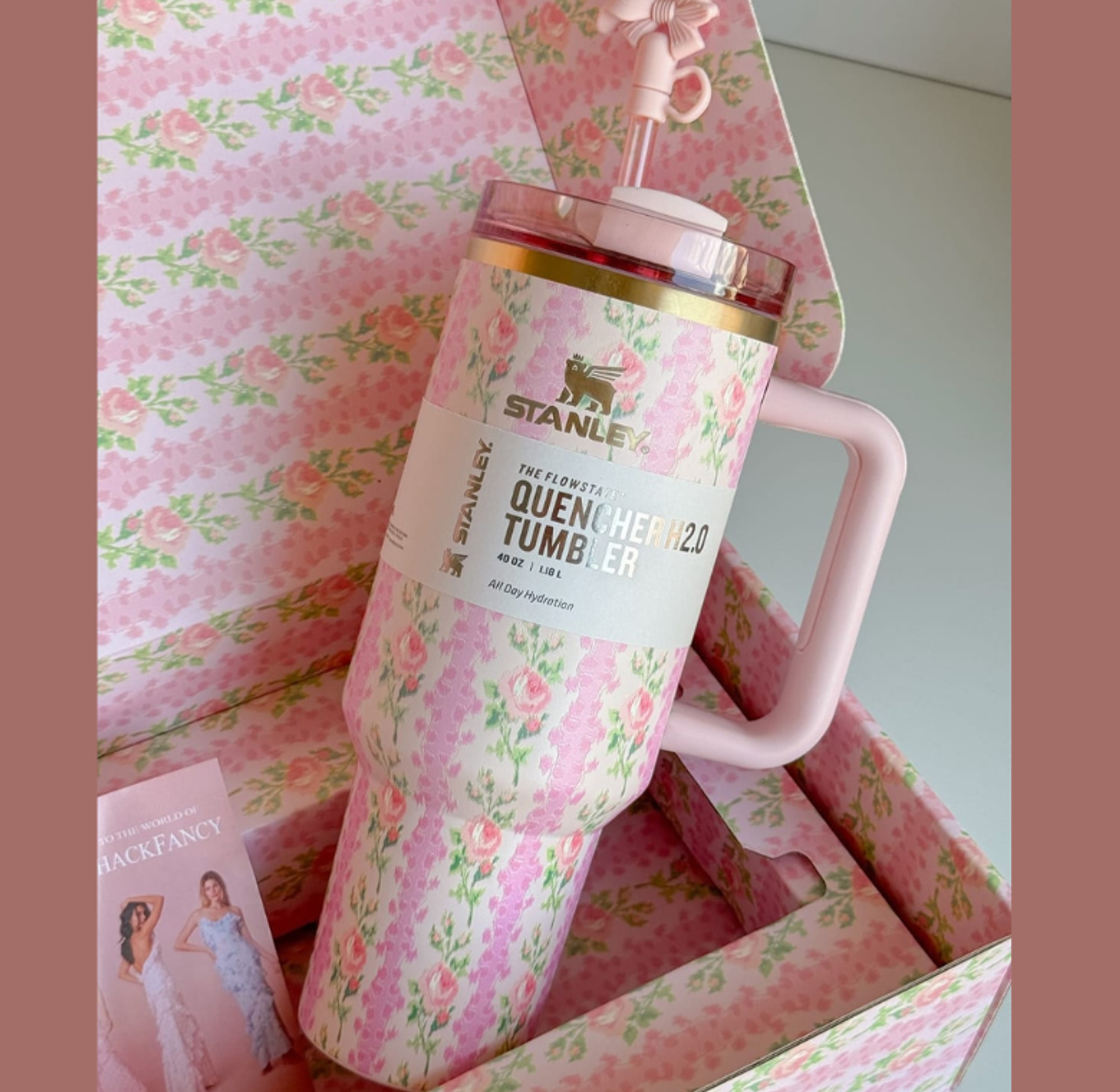 Sip in style with this stunning, limited-edition Stanley Quencher Tumbler, featuring the romantic floral patterns of LoveShackFancy. Its vacuum-insulated design keeps your drinks hot or cold for hours, combining high performance with unmatched elegance.