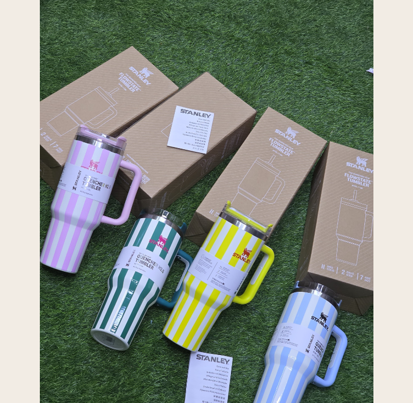 Stay perfectly hydrated with Stanley's vibrant Summer Oasis collection, featuring bold stripes and legendary FlowState™ technology. This vacuum-insulated 1.2L tumbler keeps your drinks icy cold for hours, combining high performance with seasonal style.
