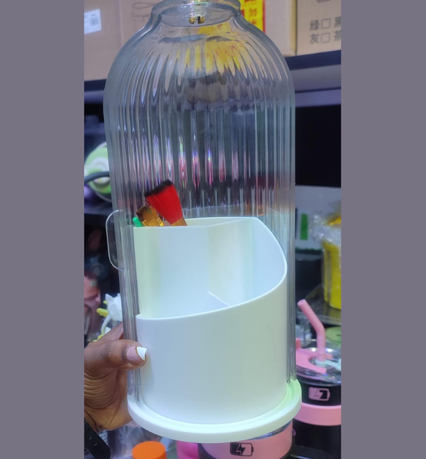 This sleek, birdcage-inspired organizer is the ultimate vanity accessory for makeup enthusiasts and professional artists alike. Designed to blend style with high-level functionality, it protects your expensive brushes from dust and moisture while adding a touch of modern luxury to your dressing table.
