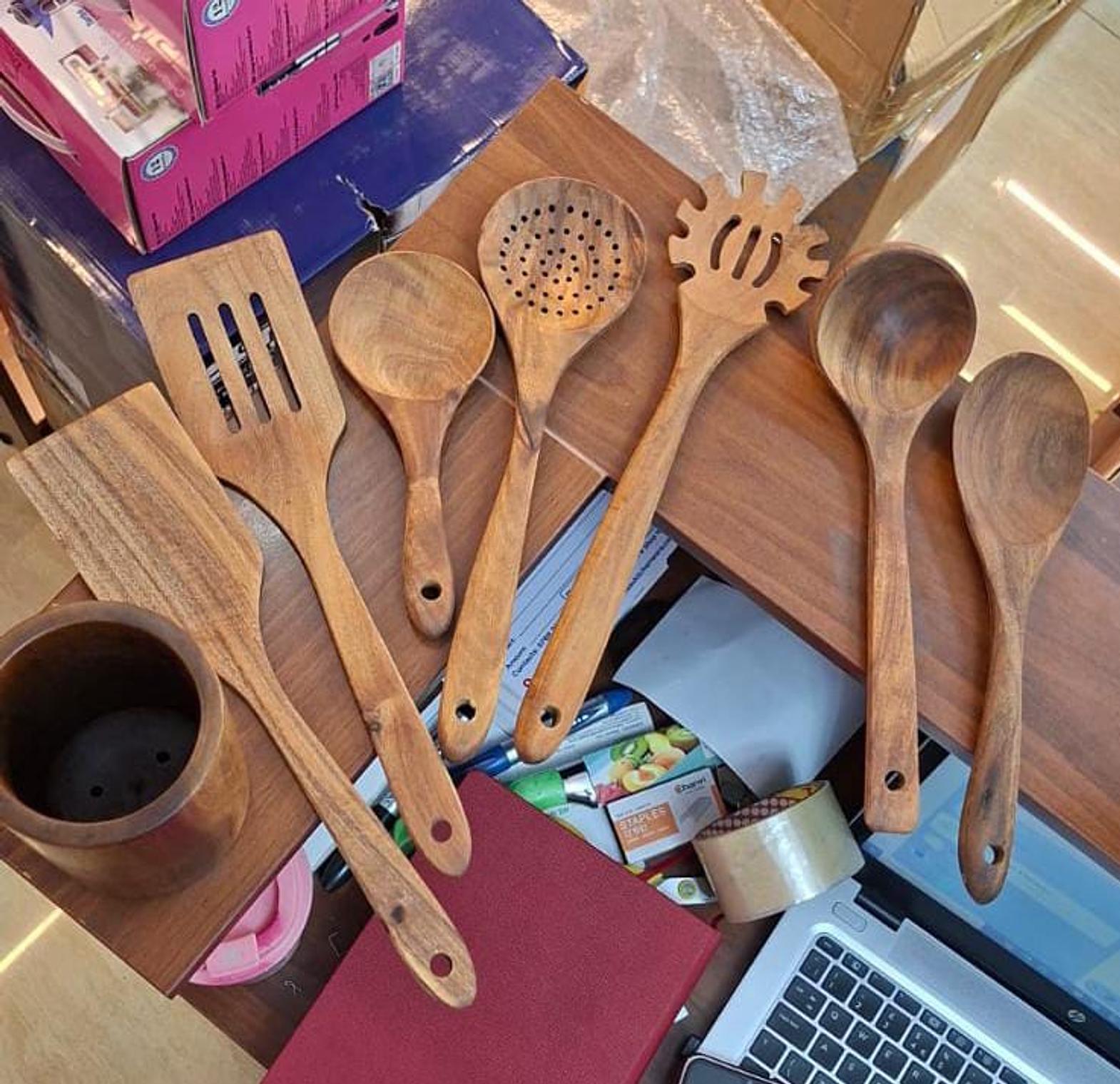 Practical 8-piece wooden spoon set designed for everyday cooking with durability and natural charm.