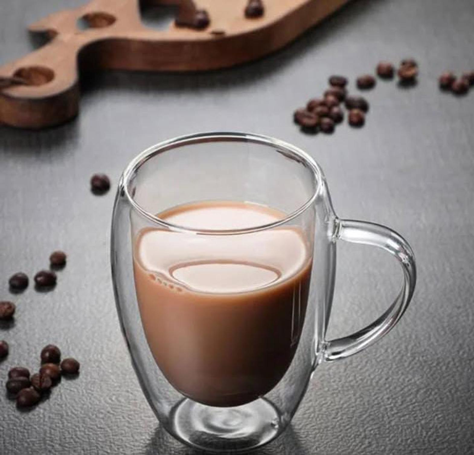 This 350ml coffee mug is expertly crafted from heat-resistant borosilicate glass with a double-walled design for superior thermal insulation. It effectively keeps your hot drinks warm and cold drinks chilled, while remaining cool and condensation-free on the exterior.