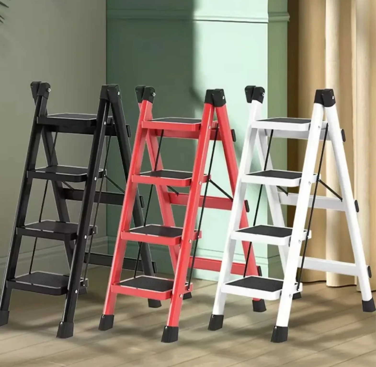 Reach new heights safely with this 4-Step Foldable Ladder, offering a height of 100cm. Crafted from premium alloy and PVC with a rust-proof coating, it can safely load up to 330kg. Available in black, red, and white.