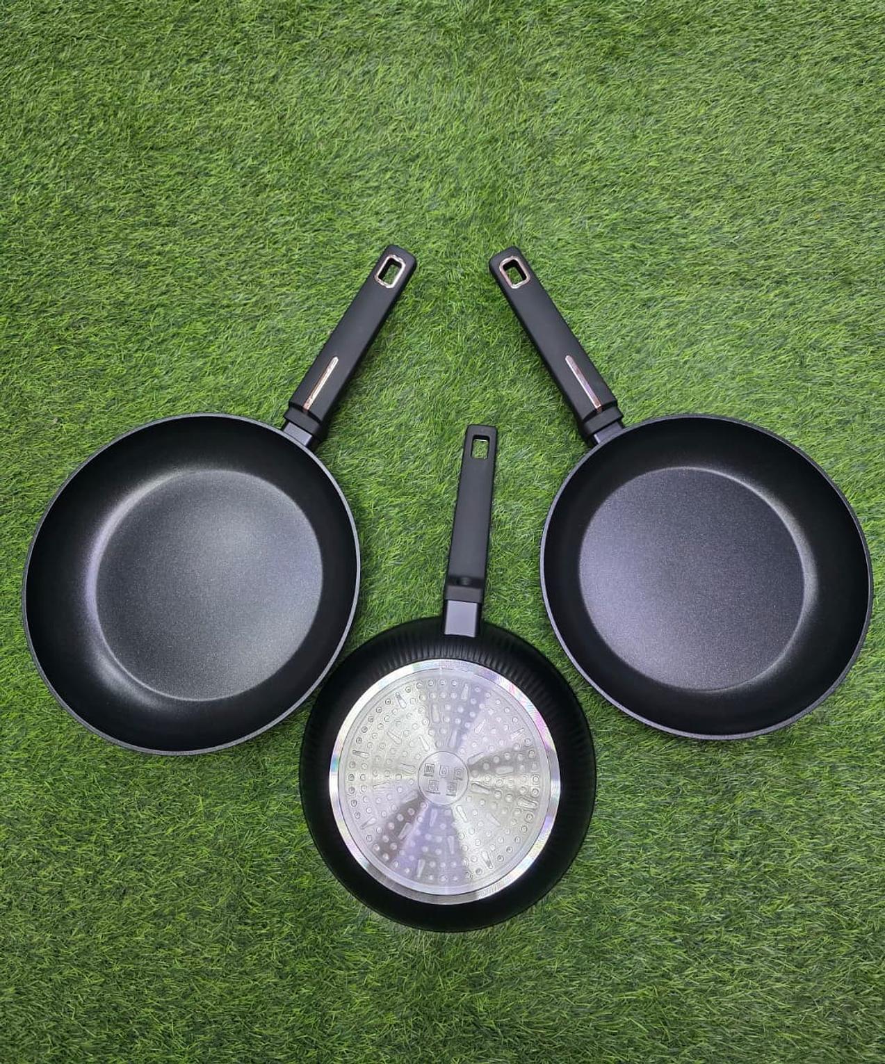 Upgrade your culinary skills with this high-quality non-stick, flat-bottomed frying pan, featuring an ergonomic Cabo handle for a secure and comfortable grip. Crafted from durable aluminum with a specialized induction base, this pan is 100% PFOA, PFOS, and BPA free, ensuring a healthy cooking environment for every meal.
